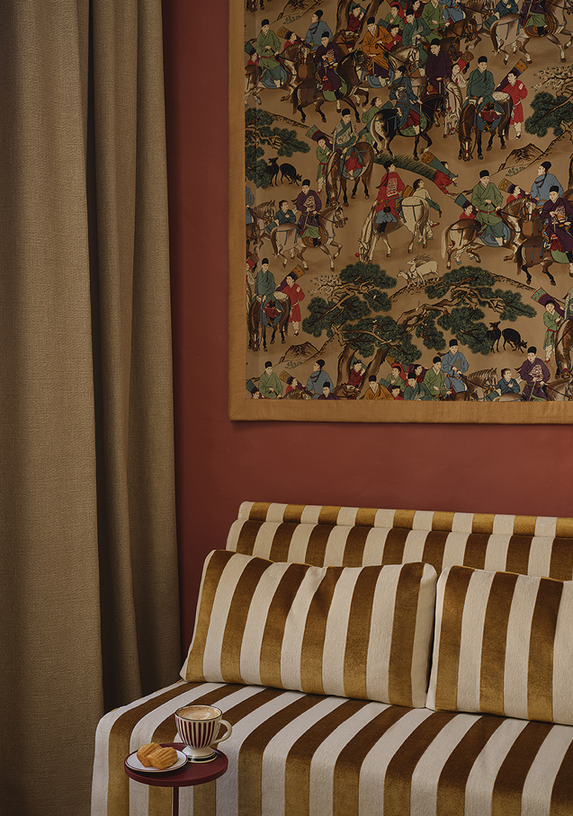 Incarnant le style et le savoir-faire français, cette maison de tissus et de papier peints s’inspire de rares documents d’archive, de voyages exotiques et d'une palette chromatique intense. Elle travaille en collaboration directe avec des artistes et des artisans.