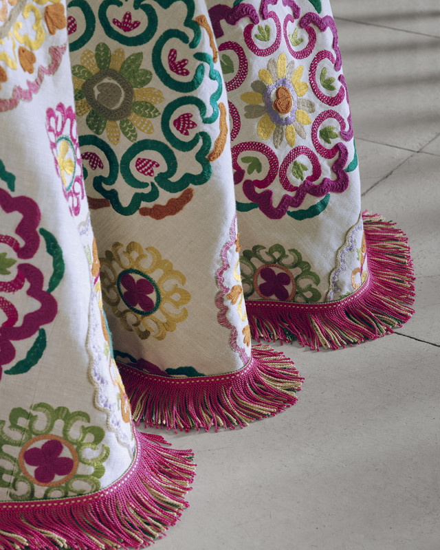 Manuel Canovas adopte l’esthétique "More is More" en introduisant des couleurs audacieuses, des tissus opulents et des détails de qualité. La nouvelle collection de passementerie s’harmonise parfaitement avec les tissus décoratifs, créant des combinaisons inattendues et luxueuses.